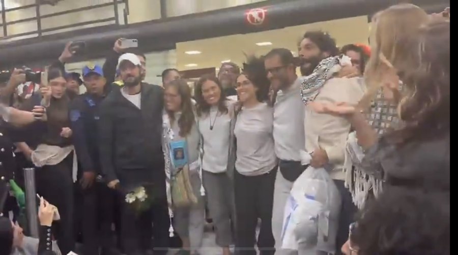Ya ante medios, familiares y activistas, en el aeropuerto de la CDMX, los seis mexicanos integrantes de la #GlobalSumudFlotilla