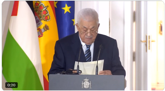 Mahmoud Abbas, presidente de Palestina sobre el reconocimiento de España del Estado palestino