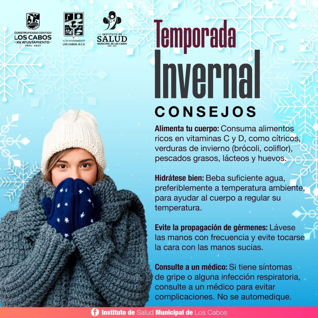 El Instituto de Salud Municipal reiteró que estas recomendaciones forman parte de las acciones impulsadas por el Ayuntamiento de Los Cabos, encabezado por el alcalde Christian Agúndez Gómez, para fortalecer el bienestar de las familias durante la temporada invernal y reducir riesgos asociados a los cambios de clima.