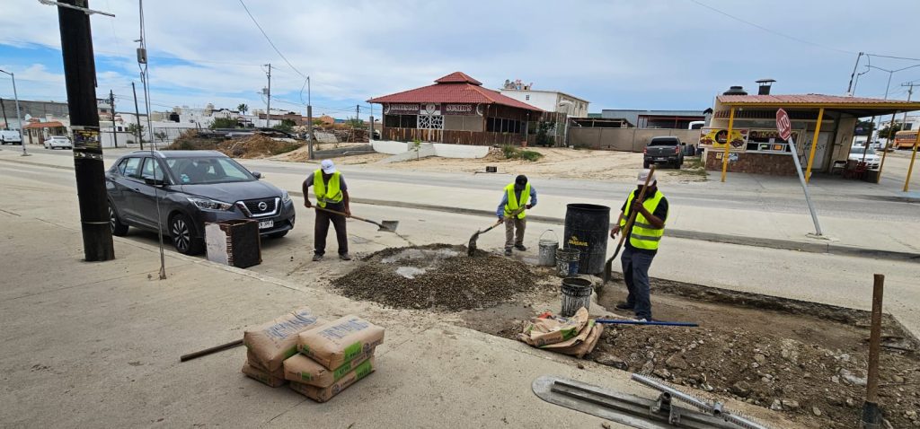 Por instrucción del presidente municipal de Los Cabos, Christian Agúndez Gómez, se realizaron trabajos de reparación de baches y acciones para mejorar la seguridad vial en las avenidas Cardón y Los Cabos, en la colonia Hojazen, en Cabo San Lucas, en atención a reportes ciudadanos.