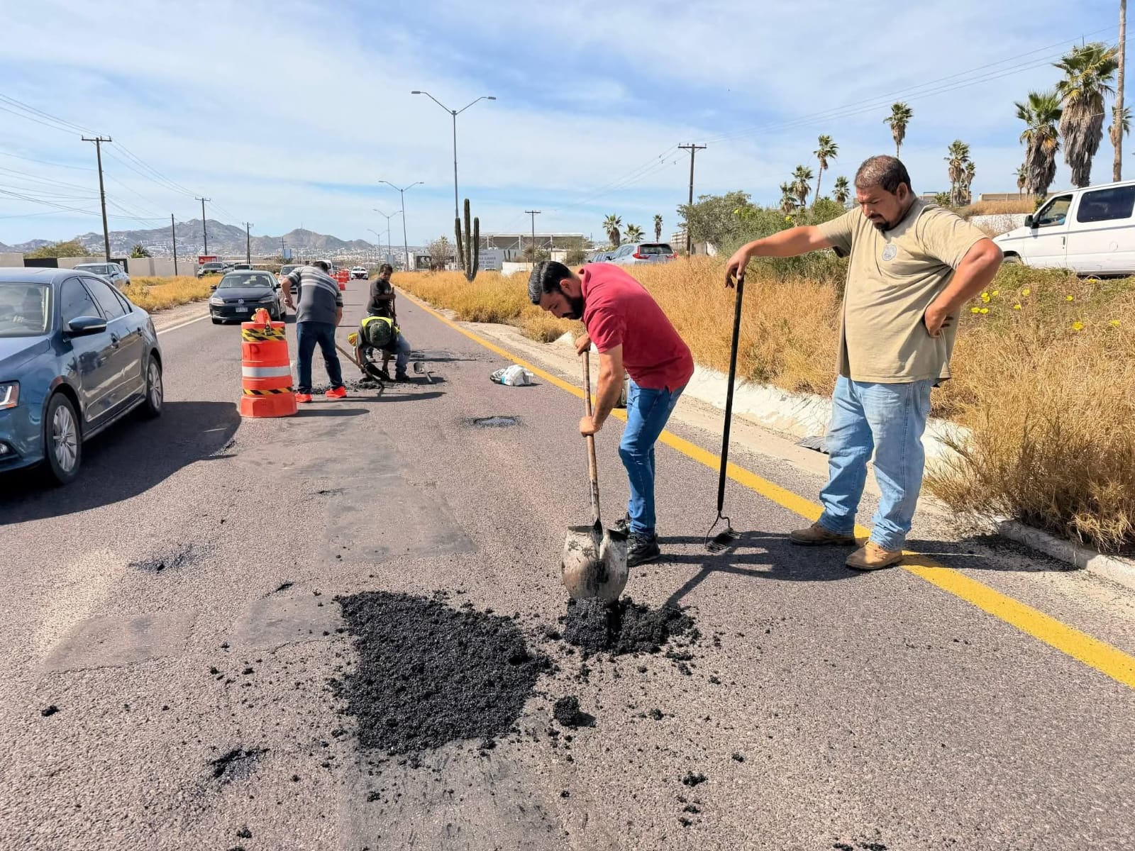 Como parte de estas acciones, el programa Caza Baches continúa aplicándose tanto en tramos de la carretera Transpeninsular como en accesos y calles de la zona urbana, con trabajos de bacheo y rehabilitación de superficies de rodamiento que presentan deterioro.