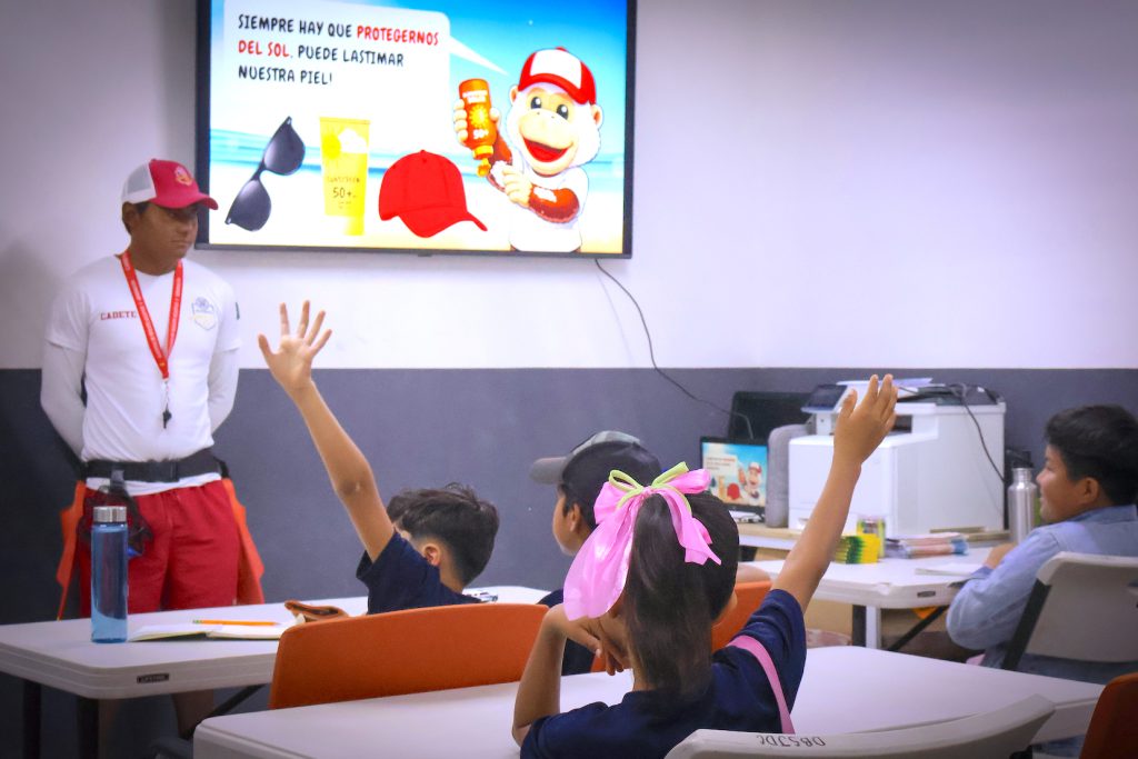 La estrategia contempla charlas, dinámicas didácticas y cápsulas informativas dirigidas principalmente a niñas, niños y jóvenes, con temas como el significado de las banderas, condiciones del mar, corrientes, prevención en albercas y recomendaciones para periodos de lluvias.
