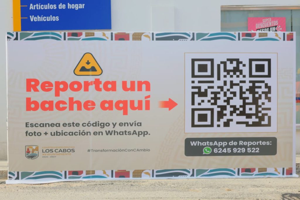 La iniciativa fue presentada en la colonia El Rosarito de San José del Cabo y se suma a la campaña del “Bachetón”, impulsada previamente por el Ayuntamiento. El sistema funcionará mediante un código QR, una línea telefónica y una aplicación de mensajería en el número (624) 592 9522, donde los usuarios deberán enviar la ubicación y una fotografía del bache detectado.