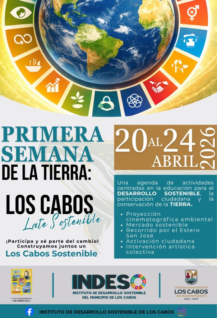 El gobierno de Los Cabos, mediante el Instituto de Desarrollo Sostenible (INDESO), convocó a la ciudadanía a participar en la Primera Semana de la Tierra, una agenda con actividades comunitarias que busca promover el cuidado del medio ambiente y fortalecer la participación social.