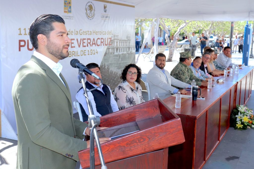 En una ceremonia cívica, autoridades del XV Ayuntamiento de Los Cabos, junto con representantes de las fuerzas armadas, estudiantes y personal del servicio público, conmemoraron el 112º aniversario de la Gesta Heroica de la Defensa del Puerto de Veracruz. El acto fue encabezado por la síndica municipal Nélida Alfaro Rosas, en representación del alcalde Christian Agúndez Gómez.