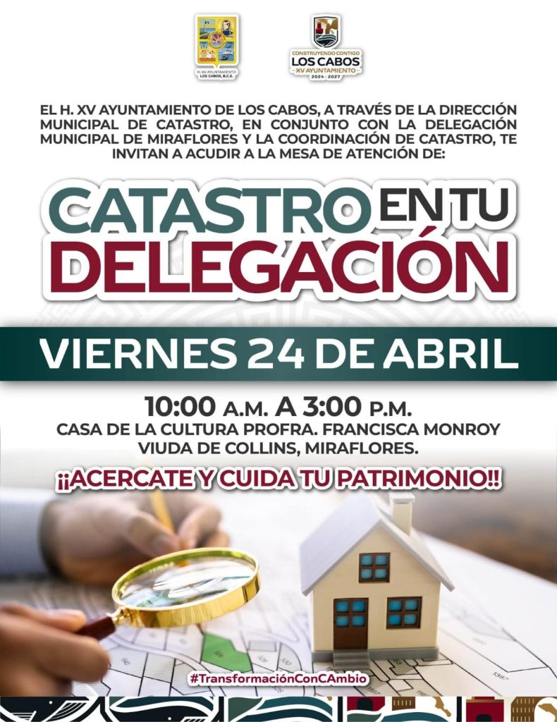 El Ayuntamiento de Los Cabos anunció una jornada del programa “Catastro en tu Delegación” para acercar servicios municipales a contribuyentes de la zona norte del municipio, con atención directa en una mesa instalada para resolver trámites y dudas.