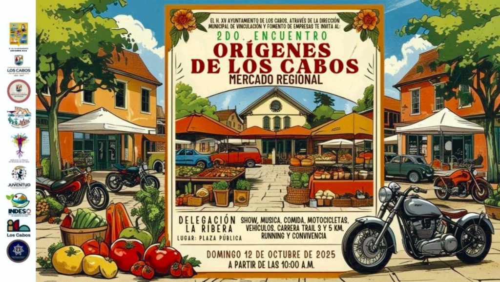 El Ayuntamiento de Los Cabos, a través de la Dirección General de Fomento Económico y Vinculación Empresarial, invitó a la ciudadanía a participar en el Segundo Encuentro “Raíces y Rutas, Orígenes de Los Cabos”, que se llevará a cabo el domingo 12 de octubre en la delegación de La Ribera.