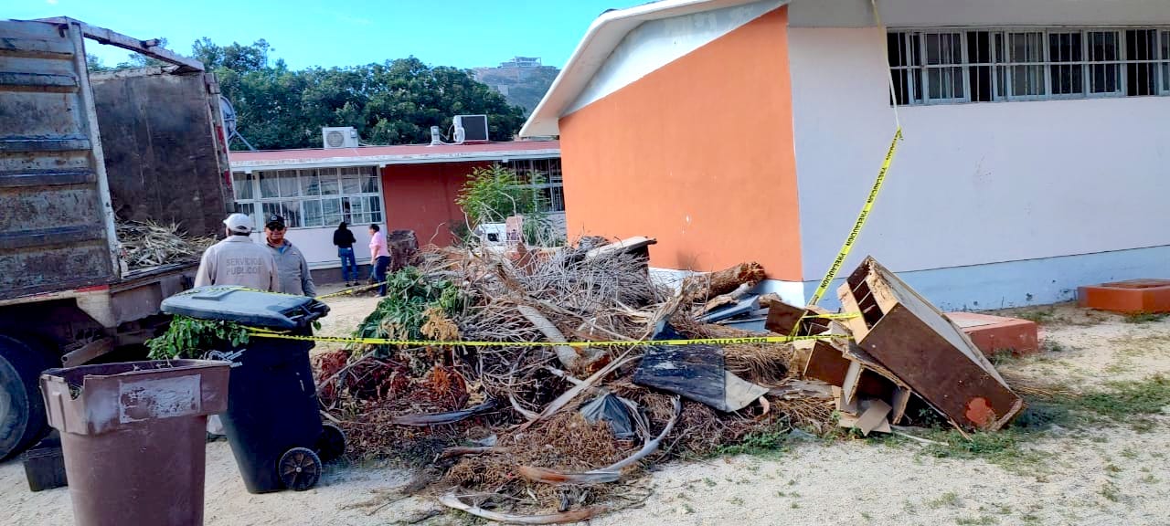 Las labores se realizaron en la secundaria Moisés Sáenz Garza, la primaria Ildefonso Green y el plantel 04 del Colegio de Bachilleres, en atención a solicitudes de las comunidades escolares. Durante la jornada se retiraron residuos acumulados y se intervinieron áreas comunes para mejorar las condiciones de limpieza y orden.