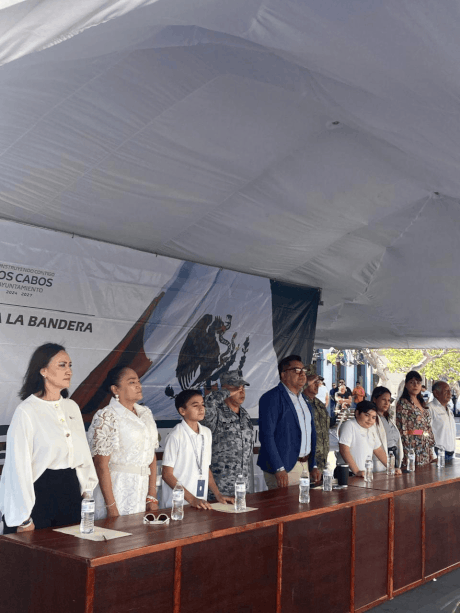 La delegada municipal María Aremy García García encabezó la actividad acompañada por la sexta regidora Marisela Montaño Peralta, además de personal del XV Ayuntamiento de Los Cabos. Como parte del programa, se presentó un acto cívico y una participación cultural a cargo de estudiantes de secundaria, en un ambiente de identidad comunitaria.