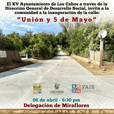 Familias recibieron la pavimentación integral con concreto hidráulico de la calle Ejido La Ribera, en la colonia Ejidal I. El gobierno de Los Cabos informó que la obra requirió una inversión de 36 millones 550 mil 396 pesos, con recursos destinados a infraestructura social.